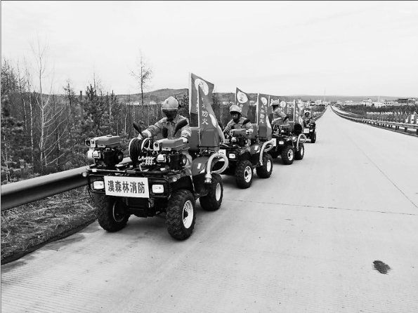 为进一步完善防火巡护体系,近日,大兴安岭漠河市采取机动载水摩托车巡护的模式,加大对城乡结合部、城市周边、林缘地带、高速公路等重点区段的巡护密度。利用车载水源对一些火险隐患进行紧急处置,有效提高了森林火灾的预防和扑救能力。 本报记者刘大泳摄