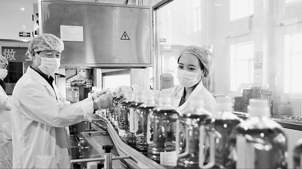 位于肇州县开发区的黑龙江亚太粮食贸易有限公司大豆榨油生产线上,工人们紧张忙碌着。该企业打造杂粮及豆制品精选深加工项目,产品销往北大荒集团、山东万德福集团、中粮集团。据了解,近两年肇州县加大粮食深加工企业的招商引资力度,10多家粮食企业陆续落户开发区;发展订单农业,进一步提升了农民的收入。 孟令威本报记者苏强摄