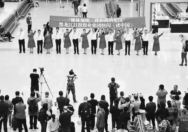 黑龙江日报报业集团“媒体领唱·我和我的祖国”系列活动快闪《读中国》现场。 张澍本报记者蒋国红荆天旭苏强邵国良郭俊峰摄