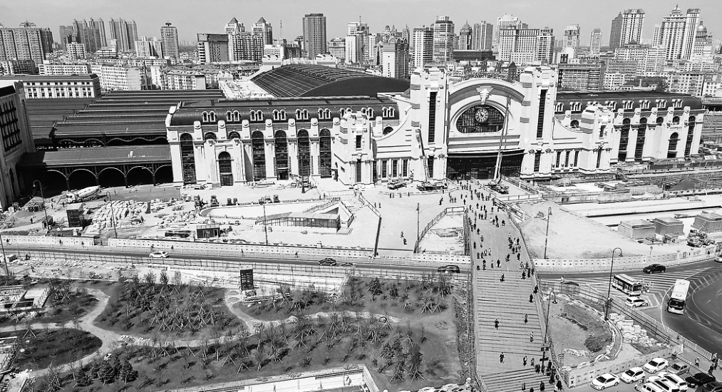 近日,哈尔滨火车站南广场建设工程正在加紧进行中,地下交通枢纽工程和地面景观工程已经施工完成过半,广场上的树木已经栽种,构成一处景观林地。侧面的公交站台已基本建成,周边的人行道步道砖也在加紧维修改造。据了解,哈站南广场工程计划2019年9月底基本竣工。 本报记者苏强摄