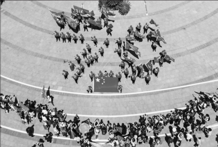 朗诵声、歌唱声、欢呼声……此起彼伏。《读中国》深情的诵读声响起,吸引游人们纷纷驻足。伴着《我和我的祖国》歌声,黑龙江日报报业集团千余名员工,挥舞着手中的五星红旗,在太阳岛掀起鲜艳的中国红与爱国情的巨浪。