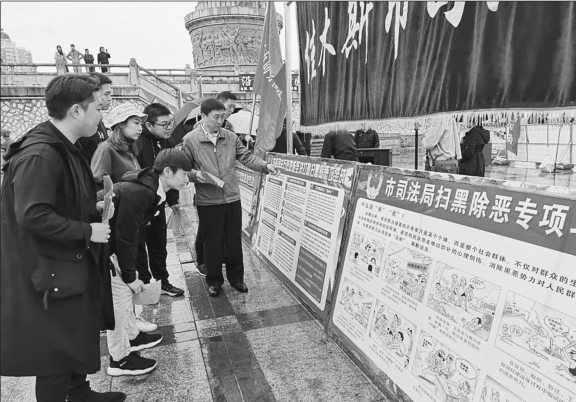 日前,在佳木斯市防洪纪念塔广场举办的全市扫黑除恶专项斗争集中宣传周活动吸引了众多市民冒雨参与。活动现场通过反复播放专题片、37块宣传板、宣读通告、咨询解答、发放明白卡、传单等方式,向市民广泛宣传扫黑除恶法律知识。