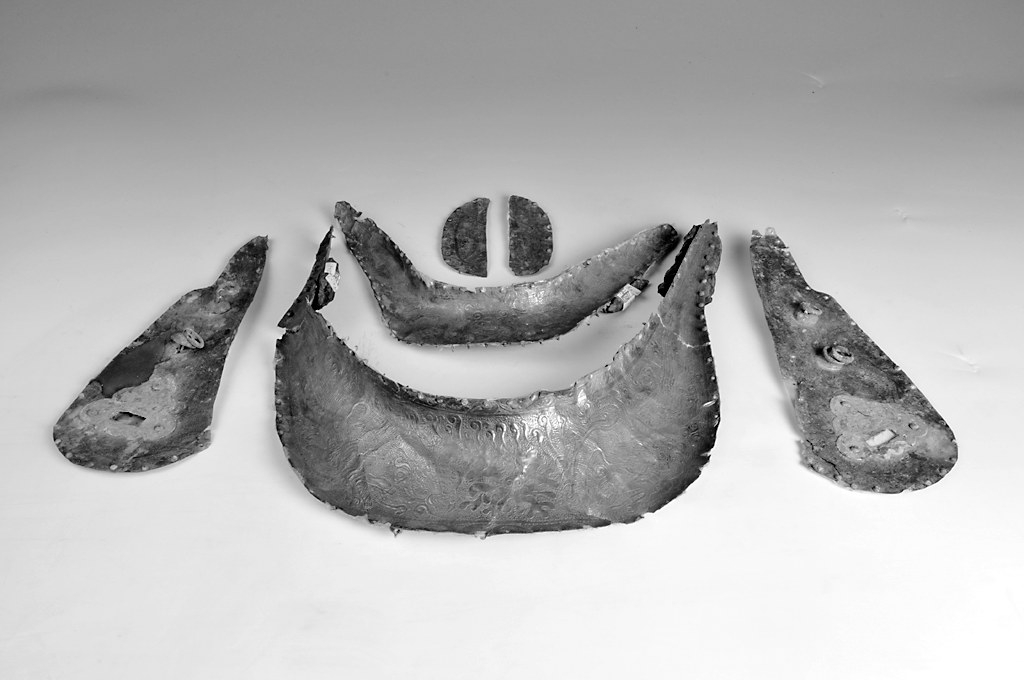 生活在白山黑水间的女真族于公元1115年在今松花江支流阿什河畔建立了一座古代都城,即金代的五京之首——金上京会宁府。新兴的女真族,在聚合了辽、宋两大王朝的政治、经济、文化、军事的综合力量之后,把中原地区的先进文化带入黑龙江流域,并使得这一地区成为东北亚地域最繁荣的都市文明区。近百年来,在上京古城内及其周边地区,出土的大量宋、辽、金、西夏等国的精美文物,充分说明了女真族所建立的金上京城,已经成为当时东北亚及中国北部的政治、经济中心。 1983年、1984年黑龙江省博物馆对哈尔滨市新香坊墓地进行了抢救性发掘,共清理墓葬16座。古墓群地处阿什河流域,是金代前期都城上京会宁府的京畿腹地,尤其是下游与松花江汇合处,分布金代古城甚多,是“金源”“内地”的中心地区。墓地出土随葬遗物300余件,金、银、铜、铁、玉、水晶、玛瑙、牙骨等材质皆有,用途可分为生活用具、工具、马具、武器和佩戴饰品、铜钱等。马鞍、银质、鎏金。由前桥、后桥与翼形片组成。前桥、后桥均呈倒马蹄形,前桥稍小。饰以二龙戏珠图案及繁缛的忍冬纹。鞍桥跨度为25-30厘米。 女真人长期从事渔猎经济,骑马狩猎是生活中必不可少的组成部分,不断地征战更是离不开骑兵的骁勇。马,对于女真人来说极其重要,考古出土的大量与马有关的文物也证明了这一点。 新香坊金代墓葬群为黑龙江省乃至东北地区金代最大的墓群,是东北地区辽金时期考古的一项重大发现,其出土的文物,对金代前期女真族的社会经济、文化等方面的研究提供了珍贵的实物资料,在东北考古学和历史学的研究上具有很高的学术价值和艺术价值。(黑龙江省博物馆张伟)