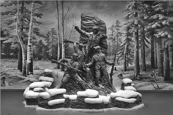 《抗战十四年——东北抗日联军历史陈列》主题雕塑“勇赴国难”。