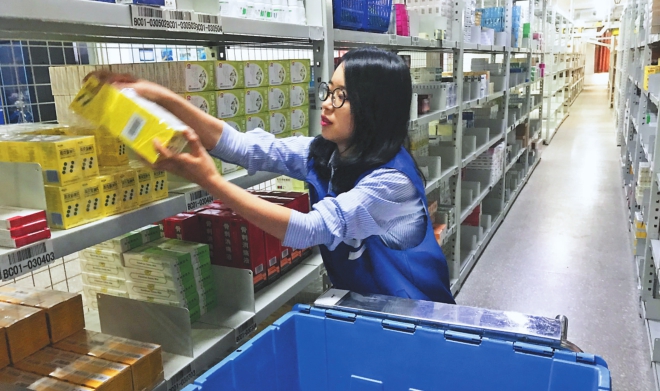 大学生在见习基地的仓储库房中忙碌地配货。 胡杨本报记者李健摄