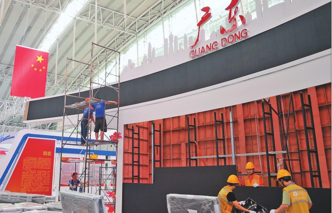 12日,哈尔滨国际会展体育中心的展厅内,第六届中俄博览会和第三十届哈洽会的布展工作正在加紧进行。现场,一些展位的搭建工作进入收尾阶段,部分展品已运抵会场,工作人员来回忙碌,有条不紊地进行着展会的各项准备工作。 本报记者苏强摄