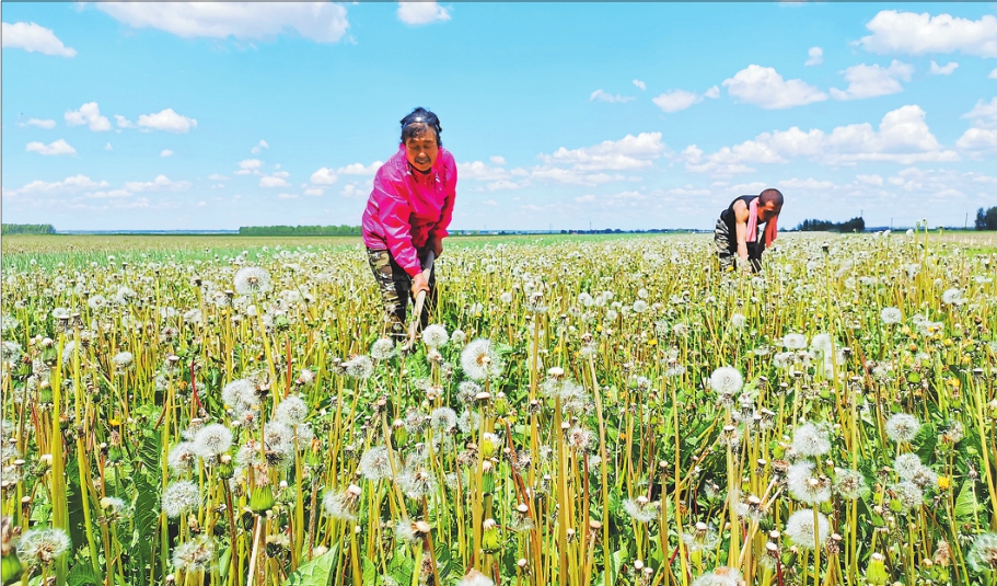 日前,肇东市宋站镇铁西村农户正在种植基地为蒲公英进行人工除草,不使用农药保证了蒲公英从叶到根纯天然无公害,又提高了蒲公英品质,更成为精准扶贫、致富增收的好项目。 两年来,宋站镇铁西村通过“企业+基地+农户+贫困户”模式,引导农户订单种植蒲公英。由村委会牵头与制药企业签订收购合同,企业免费向种植户提供产前、产中、产后技术服务,采取统一供应种子、统一培训、统一收购等方式,和农户结成利益共同体。2018年试种86亩,户均增收2万多元。今年,该村19家农户订单种植蒲公英516亩,比去年增加430亩,其中,14户贫困户种植298亩。眼下,基地内的蒲公英郁郁葱葱,成为一道亮丽的风景。 车彦旭霍永祥本报记者邱成摄