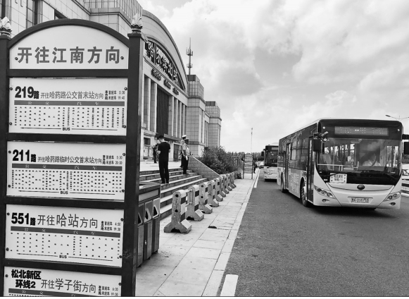 本报讯(记者陈贺)24日,哈尔滨火车站北站在原有215路、223路、213路3条的公交线路基础上,新增552路、219路、211路、551路和松北新区2路环线5条公交线路,公交线路总数增至8条,并将公交站台由站外移到出站口位置,方便哈尔滨火车站北站出行旅客乘车。 在哈尔滨火车站北站公交站台记者看到,公交站台紧邻火车站的出站口,道路上已渠化出租车、公交车、社会车辆的专用通道。 据了解,下一步,松北区将会进一步优化调整公交线路。研究制定线路调整优化方案,加强北站与市区联系,缓解北站进出旅客的出行困难。 哈尔滨火车站北站公交站台。 本报记者陈贺摄