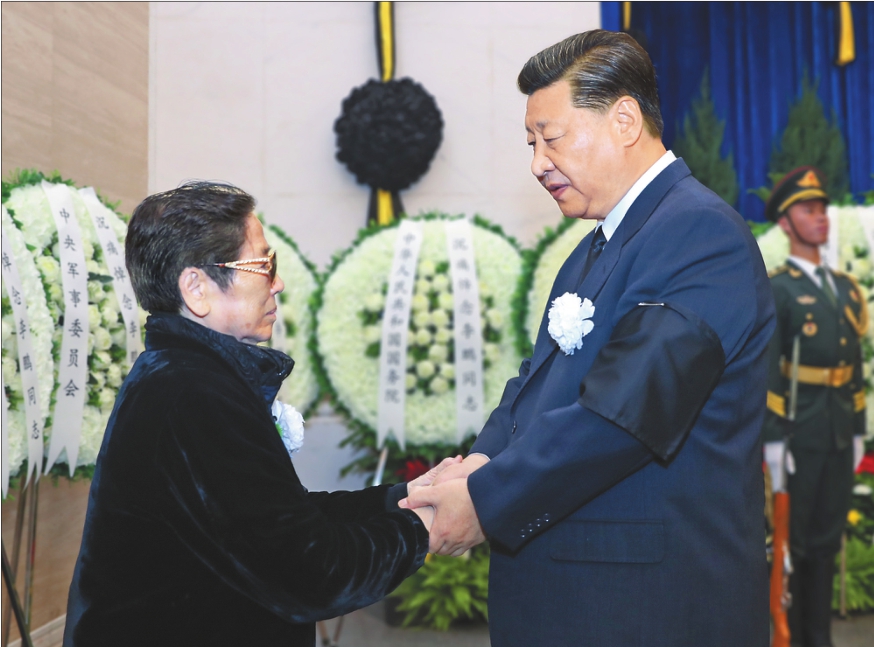 习近平与李鹏亲属握手,表示深切慰问。新华社记者鞠鹏摄