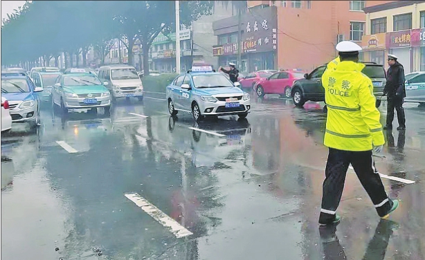 近日,受极端天气影响富锦市普降大雨,给百姓出行造成极大困难,广大交警在雨中坚强扛起保障道路安全畅通的重担,面对降雨,执勤民警坚守在一线,认真履行交通警察职责,有效保障了群众出行安全和道路畅通。 宋晓光摄