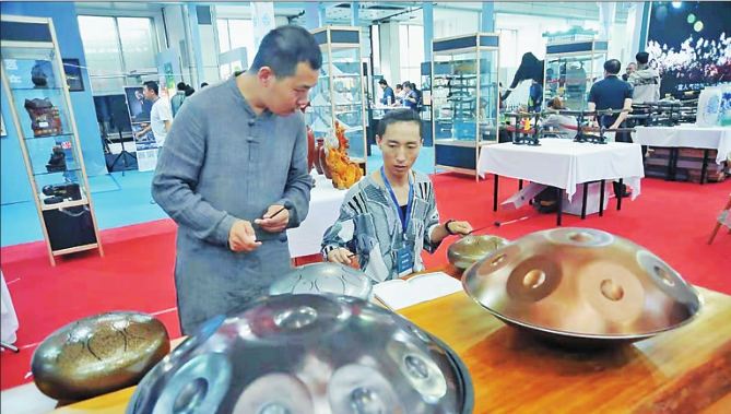 □本报记者杨宁舒 在本届文博会七台河展区,两种“神秘”乐器手碟和钢舌鼓,每天都能吸引络绎不绝的参观者和购买者。这些手碟和钢舌鼓的制作者宫大,是来自七台河的音乐人。他介绍说,酷似飞碟的打击乐器手碟,由两名瑞士人菲力·霍那和萨宾娜·谢雷于2000年所创,并于2001年在法兰克福乐器展上亮相,旋即引起了音乐界的广泛关注,备受音乐人和乐迷的青睐。手碟被国内大众熟知,是因为电视剧《好先生》中,由孙红雷扮演的男主角在街头演奏“手碟”,其空灵动人的音乐俘获了许多观众的心。 宫大介绍说,手碟工艺复杂且技术神秘,因此价格居高不下,每支手碟从国外订制,售价在2万元人民币以上,而且要等上几个月的时间。经过多年研究并赴海外求学,他已掌握手碟制作的核心技术,结合先进的自动化设备,生产出地产手碟,这样售价也可以降低至3000元左右,销量也因此大幅度上升。 去年文博会,宫大的地产手碟销售不错,今年他又带来了新产品,由他制作的钢舌鼓,“这种乐器比手碟门槛低,非常适合大众,两三百元的价格大家也能接受。”