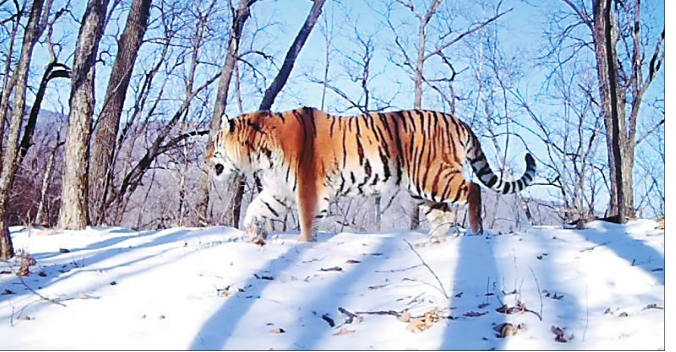 重点保护动物欧亚水獭。 东北虎、欧亚水獭图片由保护区红外相机拍摄