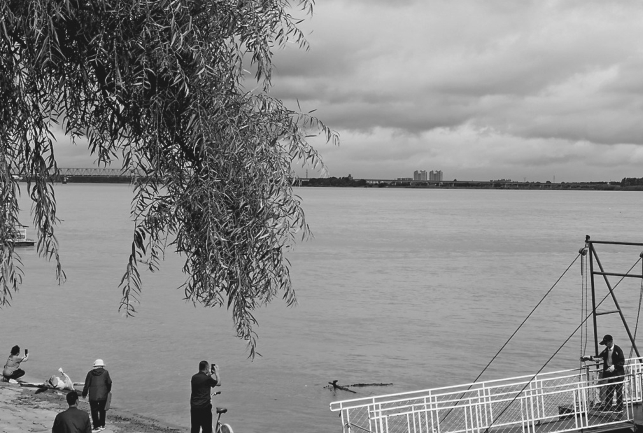 19日,一号洪水到来时松花江佳木斯段水面。 蔡天鹤摄