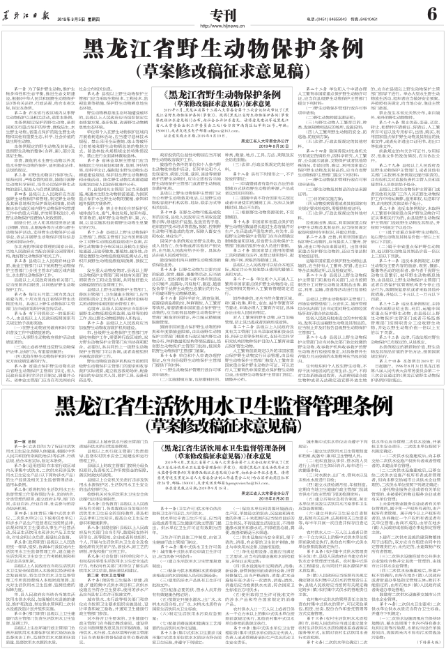 《黑龙江省野生动物保护条例(草案修改稿征求意见稿)》征求意见