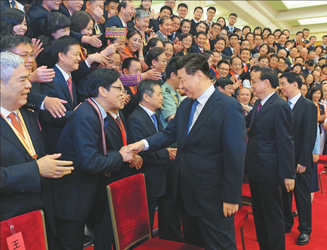 9月10日,党和国家领导人习近平、李克强、王沪宁等在北京人民大会堂会见庆祝2019年教师节暨全国教育系统先进集体和先进个人表彰大会受表彰代表。新华社记者申宏摄