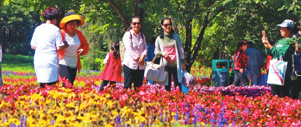 近两天,哈尔滨天气晴朗,温度适宜,很多市民来到太阳岛游玩,游客徜徉在花海和绿荫之间,感受秋日哈尔滨风光。本报记者郭俊峰摄