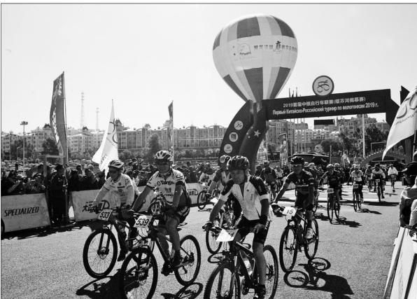 15日,2019年首届中俄自行车联赛在绥芬河开赛,205名中俄选手同台竞技。联赛共分三个赛段,揭幕战在绥芬河举行,18日将在符拉迪沃斯托克市进行第二赛段比赛,总决赛将于21日在抚远市举行。首届中俄自行车联赛填补了中俄两国在自行车领域共同办赛的空白,将发展成为中国重大成长性体育赛事之一。 本报记者杜怀宇摄