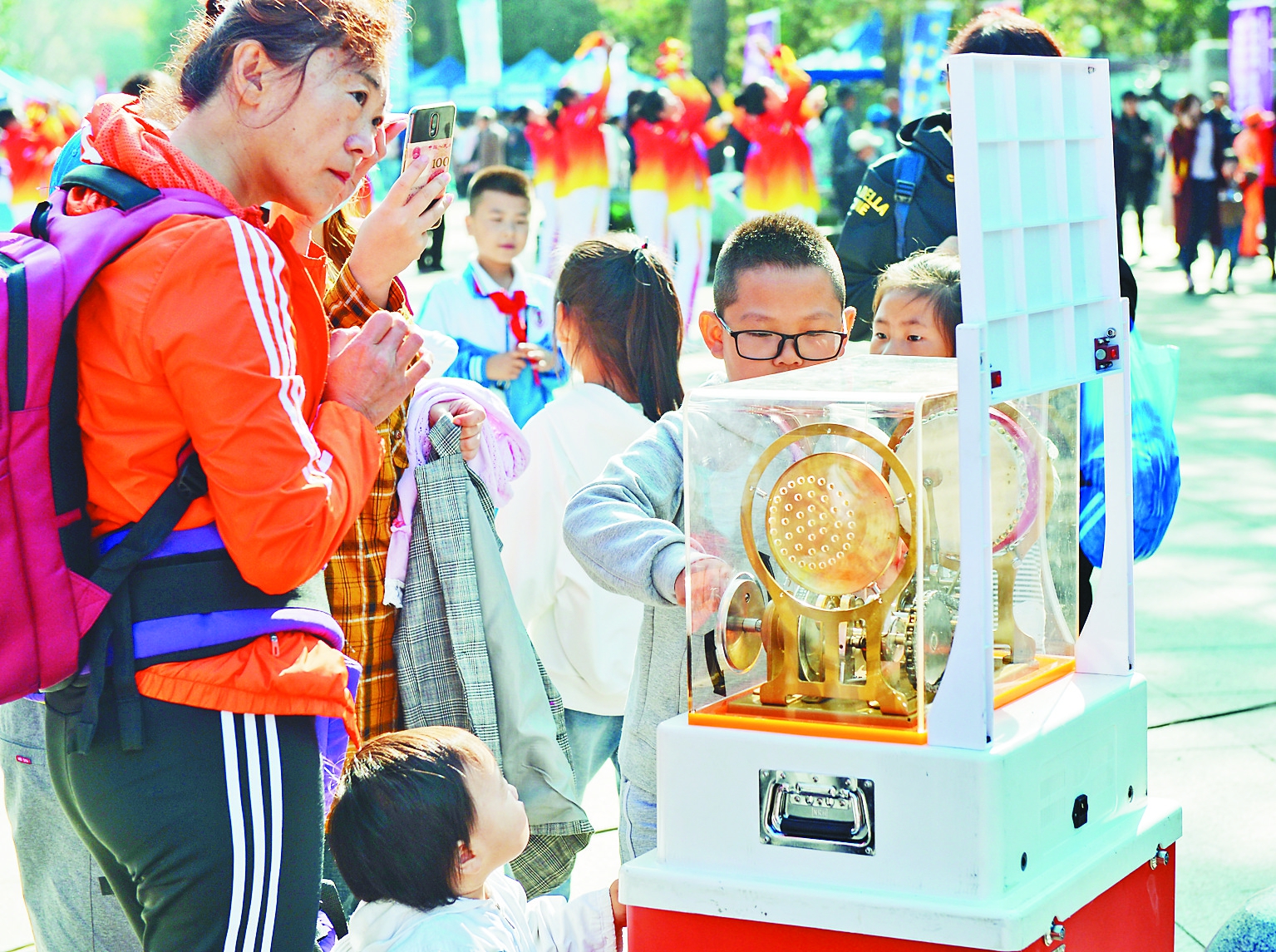 □本报记者彭溢蒋平 “我看到了国际水下机器人大赛冠军‘钟小馗’,它可真厉害!”“我找到了可以定时的智能手机插座,有了它就不用担心手机充满电忘记拔线了。”“我参与科普游戏赢得了垃圾分类教具。”……21日,作为全国科普日的四个分会场之一,由省科协、省委宣传部、省教育厅、省科技厅等单位共同主办的2019年黑龙江全国科普日暨金秋科普月主场活动,以“礼赞共和国智慧新生活”为主题,以“科技、创新、环保、绿色、体验”为主元素,开展的科技创新成果展示、智慧生活体验、科技志愿服务、垃圾分类普及等系列活动,以生动活泼、互动参与性高的方式展示最新且实用的科技成果,为公众奉上了一场全方位的科普“盛宴”。 普及垃圾分类引领绿色生活 “以后我们看到这个颜色的垃圾分类桶应该往里面扔哪一种垃圾呢?”一群青少年围着主场活动舞台两侧的垃圾分类卡通人偶,问着“十万个为什么”。舞台上,科普大使与观众进行互动游戏,利用道具设置的鱼骨头、电池、大骨棒、海绵抱枕等,寓教于乐地向现场观众普及如何分辨干垃圾、湿垃圾、回收垃圾等知识,并依次投入正确的垃圾桶内。科技环保展区内,“环保小能手科普日上换一换”活动,通过邀请小朋友们现场进行二手玩具置换,着重培养青少年环保、节约的理念。科技志愿者则推荐公众体验垃圾分类线上线下小游戏,实体虚拟配合,普及生活垃圾分类投放、分类收集、分类运输、分类处理知识,推广生活垃圾分类,促进资源循环利用,共享绿色环境。 “我们此次带来了30个垃圾分类教具,作为现场互动的小奖品。目的就是在寓教于乐的过程中帮助孩子们从小养成垃圾分类的好习惯。”中亚环保科技集团董事长助理金田告诉记者,企业研发了回收微信公众号与线上回收APP,倡导全民进行垃圾分类工作,以增强群众资源循环利用意识。 “刚才工作人员给我介绍了垃圾回收APP,用它可以坐在家里直接电话下单或者线上预约上门回收,成功后会有工作人员上门收物品。这样我们在家攒的旧报纸、塑料瓶,就不用自己走挺远送到废品收购站去卖了。”市民王女士向记者介绍着她的收获。 “智慧+”让生活更安心 “我们在网上看到手机电池充爆炸的新闻,其实挺担心安全问题的。所以这款有定时充电功能的智能插座,还挺吸引人的。”在“智慧+”展区,市民张先生告诉记者。 记者看到这里有智能照明、智能安防、影音娱乐和门窗遮阳等一系列智能产品。欧瑞博全宅智能家居经理关键介绍,“我们可以为市民提供全屋式智能解决方案,根据不同市民的需求进行个性化调配。举个例子,像这款MixPad超级面板,它内置强大处理器与环境传感器,兼容多种物联网协议,融合按键、触摸、语音和App四大交互方式。通过AI和大数据,以多种连接协议、全面交互方式接管全屋智能设备,可以实现全面而高效的系统性交互体验。” 另一侧,刘女士站在展台前仔细询问着老人报警器。她说,“我家孩子小,整天忙完工作就是围着孩子转。父母年纪大了,有时候顾不上他们,挺担心他们生病的时候我们做儿女的不在身边。我看到这个老人用的紧急按钮,能让他们在不舒服的时候一键报警联系我们,挺实用。” 倡导“智慧生活”是本次主会场活动的一大特点。“智慧+”展区通过现场演示与百姓生活息息相关的高科技产品,让公众充分体验科技创造的美好生活。 “我家刚装修完,父母嘱咐我放了绿萝在家里吸一吸甲醛。不知现在室内空气是否达标,所以我现场申请了一个空气甲醛自测盒,据说它能像PH试纸测酸碱度一样地测出室内甲醛的数值。”市民孙女士高兴地告诉记者。 冠军机器人亮相青少年萌生科技梦 “这个机器是什么啊?它后面怎么有这么多根线啊?”8岁的张传淏站在哈尔滨工程大学的展台前试探性地触碰眼前这个满身“机关”的机器人,小小的眼睛里写满了大大的好奇。 “这是‘钟小馗’,是我们哈工程十年磨一剑的成果。它身上集合了多项技术,都是我们自主研发的。它获得了国际水下机器人大赛的冠军,那个比赛是业界公认的水下机器人领域最高级别赛事,被誉为水下机器人领域的‘世界杯’。”参与研发“钟小馗”的大学生介绍道。 “你看这两个哥哥都是零零后,你这个一零后的小萌娃长大之后想不想加入这个团队啊?”哈尔滨工程大学团委王雪松与小传淏温暖互动。 “我们这次还带来了‘仿生鱼’,将它配以专业的记录设备,就能够帮助我们人类深入水下拍摄鱼的生活轨迹和影像资料。”哈尔滨工程大学学生栾思敏向围在“仿生鱼”身边的小学生们介绍道。 在学会和高校科普展区,以我国最先进的航天设备模型、新式无人机、检测机器人等科研成果的具体展示,让观众在互动体验的同时,了解航空航天、航海、机器人的相关知识,感受祖国科技突飞猛进的变化。 科普进校园激发学生探索热情 据介绍,今年黑龙江全国科普日暨金秋科普月活动,在近一个月的时间里,全省各地将推出1000余项科普活动,其中特色活动286项,一道道“科普大餐”将点燃公众的科普热情,激发全社会的创新热情和创造活力,促进全民科学素质的提升。 日前,为了让同学们感受未来“黑科技”的神奇魔力,龙版传媒机器人创客教育走进哈尔滨市复华小学,为二年二班的同学们带来了一堂《未来已来——梦想“编程”