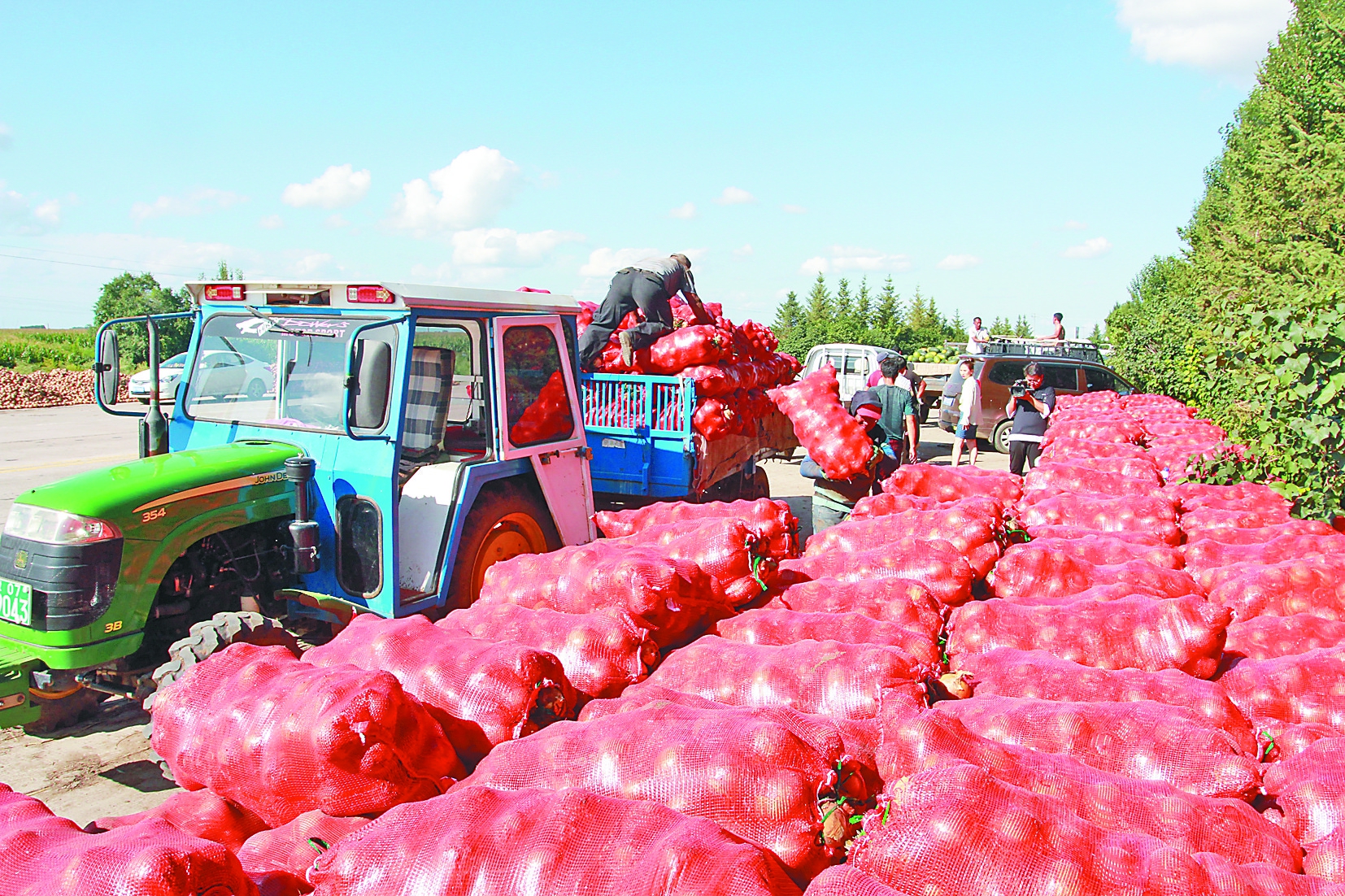 秋日里,在梅里斯达斡尔族区大八旗村,当地独具特色的洋葱已经装袋等待外运。梅里斯洋葱是国家地理标志保护产品,远销俄罗斯、日本、韩国等多个国家和地区。 闫美艳本报记者姚建平摄