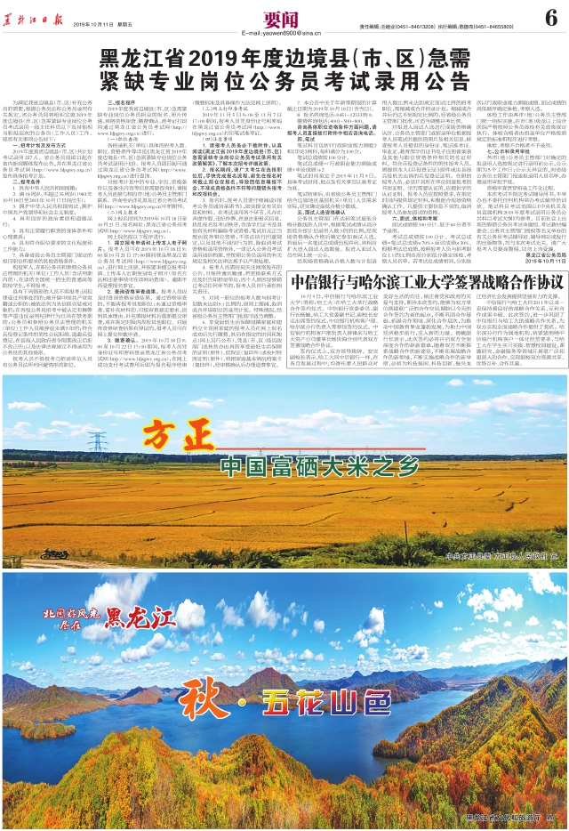 黑龙江省2019年度边境县(市、区)急需紧缺专业岗位公务员考试录用公告