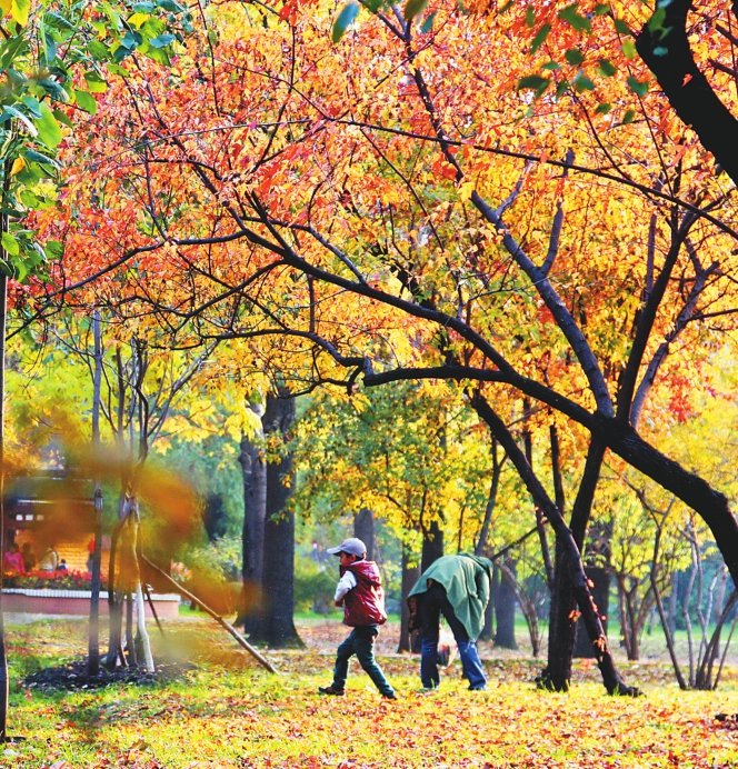 市民在省森林植物园踏秋。 本报记者苏强摄