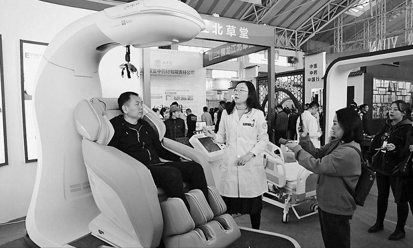 □本报记者徐佳倩谭湘竹 3D互动雾幕下孩童穿梭,感受清新神奇的氛围;按摩号脉处人声鼎沸,排起了长长的看诊队伍;3D颈椎康复机器人、电动多动能病床前看客不断,高科技康复机器吸引人们跃跃欲试。这处热闹的景象,就来自黑龙江中医药大学附属第二医院展馆。 本届博览会,中医大二院派出省名中医、龙江名医现场展示传统特色中医风采,还展出了可以艾灸、按摩的智能化设备,吸引了众多参观者。 中医大二院院长李书霖告诉记者,中医大二院与哈工大机器人集团联合成立黑龙江省智慧医疗康复研究院,将中医理论、现代康复技术及机械制造融合,致力于中医康复诊疗设备的研发和应用等。此次在智能中医体验区展出3D颈椎康复机器人、电动多动能病床、小愈机器人、腰部康健按摩仪、颈部康健按摩仪等设备,有的可以用于艾灸,有的可以用于按摩,缓解疼痛,操作简单方便。