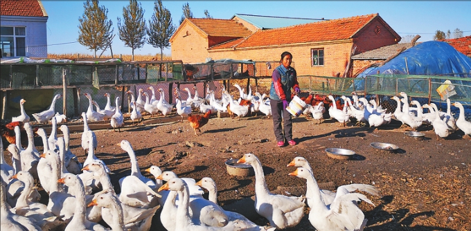 在扶贫干部的帮助下,田玉娟一家搞养殖业脱贫致富。