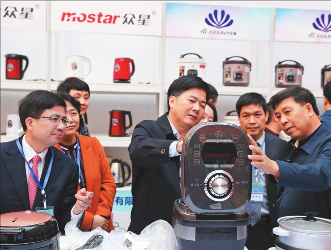 与会嘉宾正在查看小家电。 康乘华本报记者程瑶摄