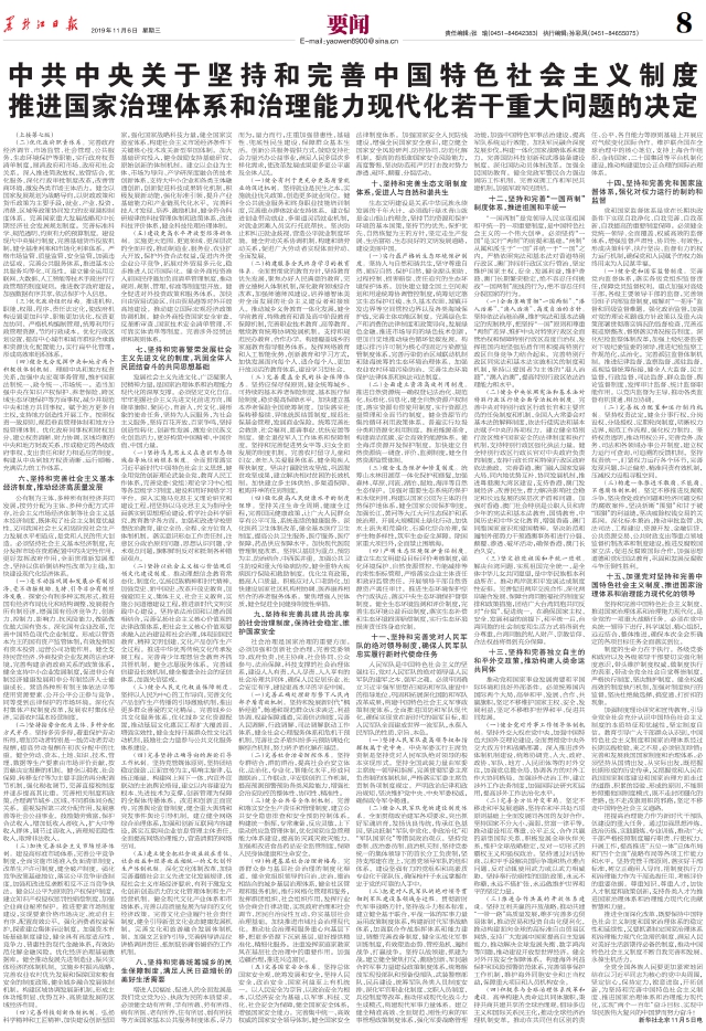 中共中央关于坚持和完善中国特色社会主义制度推进国家治理体系和治理能力现代化若干重大问题的决定