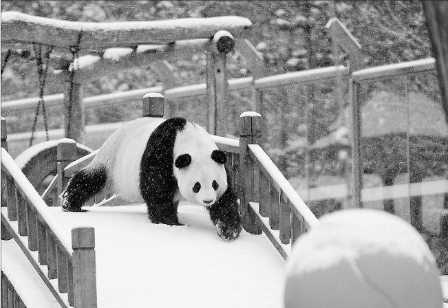 连日来,我省迎来了多场降雪。生活在亚布力景区内中国亚布力熊猫馆的思嘉和佑佑一直处于兴奋状态,它们在雪地里尽情玩耍,成为游客赏冰乐雪中新的一景。思嘉戏雪,憨态可掬。 吴杰本报记者王志强摄