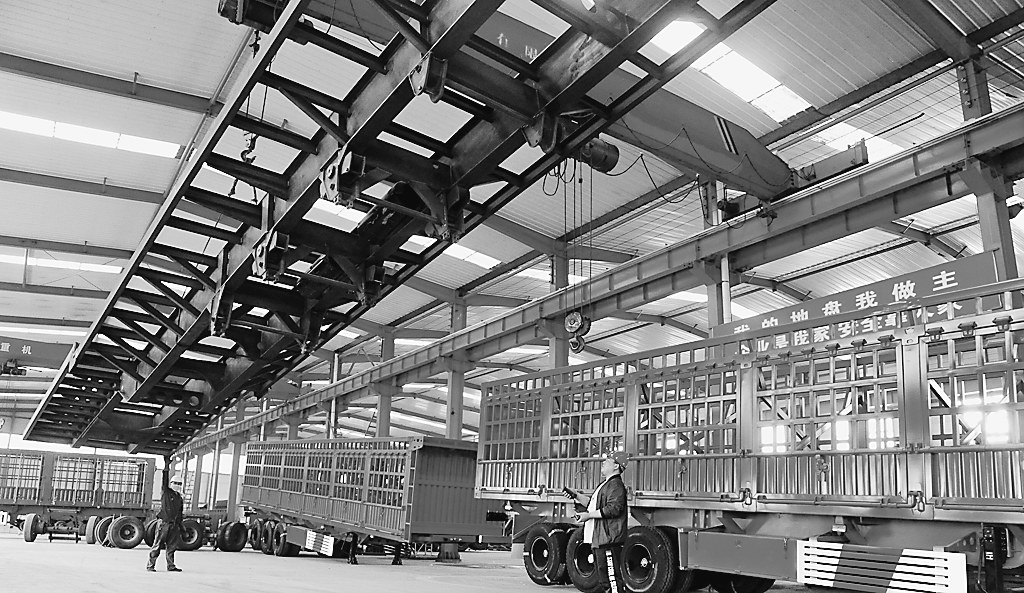 近日,在林口县盛德车业研发制造有限公司挂车生产线上,工人正在进行挂车货厢的吊装。 该企业是集半挂车、罐车、箱式货车等特种车辆研发制造为一体的综合性制造企业,是我省唯一通过国家考评的特种专用汽车的挂车准入民营企业,填补了我省特种车、挂车制造行业的空白。目前,企业年可生产半挂车、箱式货车1500辆(台)。 目前,该公司正在与中国一汽集团洽谈向俄罗斯出口车辆业务。早在2016年,该企业就曾将50台对俄贸易专用挂车销售给俄罗斯远东法尔吉斯公司。 冯春涛本报记者荆天旭摄