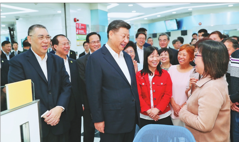 习近平在黑沙环政府综合服务中心同澳门市民亲切交流。 新华社记者黄敬文摄