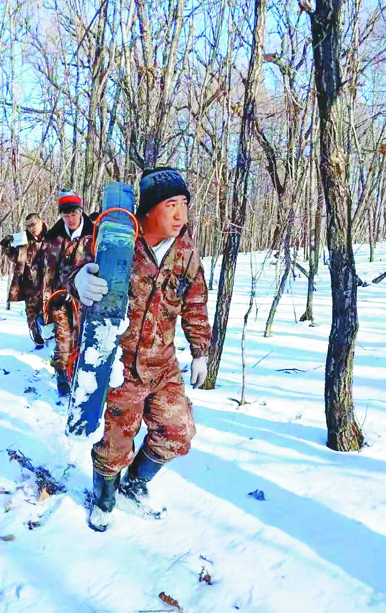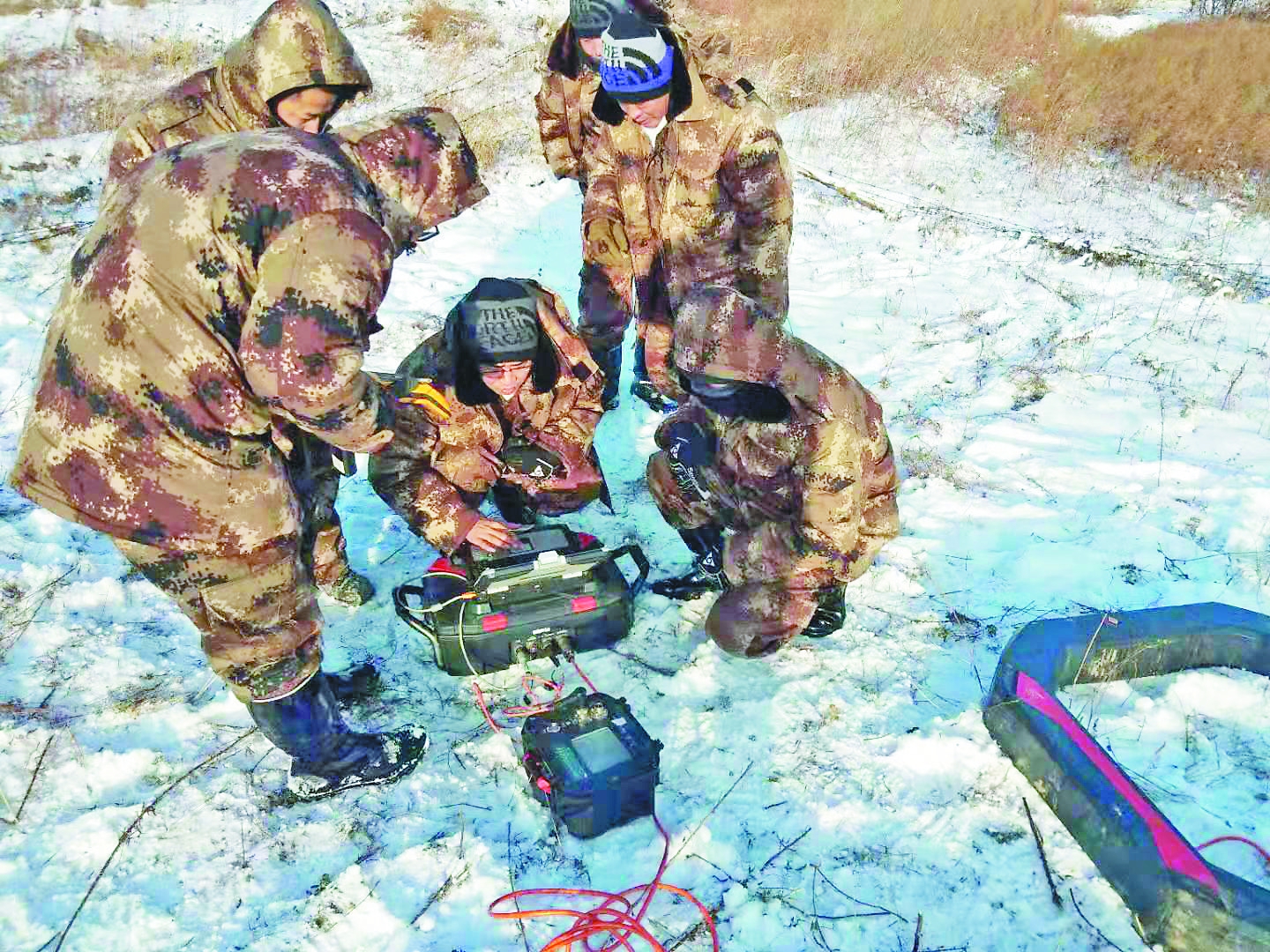 远看像盗猎的,近看像拉练的,细问才知是勘探的。15人在这天寒地冻的深山里工作就相当于给地下矿井做体检、拍CT、出诊断。 物探野外工作只能在庄稼收割后和青苗长起来以前这段时间进行,每天从早干到晚,连午饭都要换班吃,才能保证仪器设备不间断运行,工作重复枯燥但却很有价值。每个测区布线2500米,实测区域约9万平方米,每个测区200多个测点,一天能完成一个测区。物探队所用核心装备是TVLF煤矿探水雷达,确定探测区域地下矿层中是否存在水体,好为后续开采工作提供参考。 这支队伍是5年前七台河市煤管局物探队的原班人马,2015年物探工作结束后队伍解散,人员各奔东西。今年汛期雨量特别大,茄子河区部分关闭矿井有可能被雨水灌入。为现有生产矿井和拟保留矿井今后生产、扩建时排除水患,茄子河区重组物探队,对辖区矿井地面进行物探。全区共计490个拟探测区,探测用时约一年左右。物探队将为该区煤炭产业提供非常有价值的第一手水患资料,为矿区安全生产筑牢一道坚实的安全防线。 物探队在野外作业。 解洪旺本报记者文天心摄影报道