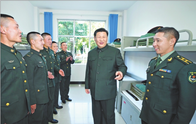 1月19日,习近平在某边防营同官兵亲切交谈。 新华社记者李刚摄