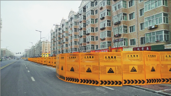 本报讯(记者陈贺)为全面实施小区封闭式管理,阻断疫情传播。近日,哈尔滨新区江北一体发展区裕民街道根据《哈尔滨市应对新型冠状病毒感染肺炎疫情工作指挥部第8号公告》要求,连夜对所有开放式小区进行了围挡封闭。 据了解,裕民街道共21个居民小区,其中志华商城、柒季城等5个小区是开放式小区,没有围墙,单元门出来就是街路,给疫情防控带来了一定的难度。为此,裕民街道经实地勘测,决定采用建筑工地围挡对小区进行封闭管理。在工程材料到位后,由街道5名领导班子成员每人负责包保1个小区,组织人力连夜施工,所有人员通宵没睡,经过36个小时连续奋战,5个开放式小区全部封闭完毕,共使用围挡材料2000余片、3000多米。小区实行封闭管理后,每个小区只设置1个出口,并设专人24小时值守,严格控制人员流动,牢固筑起了疫情防控的安全防线。 小区被围挡封闭。 本报记者陈贺摄