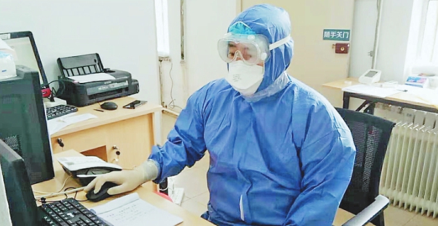 □徐望 经历过2003年非典、2009年甲流的齐齐哈尔市第一医院高压氧科负责人王明晖,面对如今的“新型冠状病毒”,显得从容和淡定。抗“疫”阻击战打响后,王明晖立即请战,并被委任全面主持北院区发热门诊及隔离病房工作。 每天早上8时进入隔离病房工作十五六个小时是家常便饭,有时为了节省防护用具,他甚至不能进食、无法如厕。终于,在王明晖与医护人员的共同努力下,北院区发热门诊及隔离病区工作运转顺利有序。为患者取样检测时经常会发生体液喷溅的情况,而对于多年患有高血压、糖尿病、冠心病等基础疾病,且曾做过心脏支架的王明晖来说,更是危险系数极高。密闭的防护衣穿戴一整天汗流浃背,但他从未退缩与抗拒。在这期间,身体免疫力本来就较差的王明晖曾有过心绞痛发作,几度汗流满面,同事们劝他赶紧退出、好好休息,医院也同意让他暂时休整,可他却执意要坚持到底。晚上脱下防护服,他还是继续工作状态:或在线答复问诊的患者,或研究最新的诊疗方案,或做好团队培训的准备。