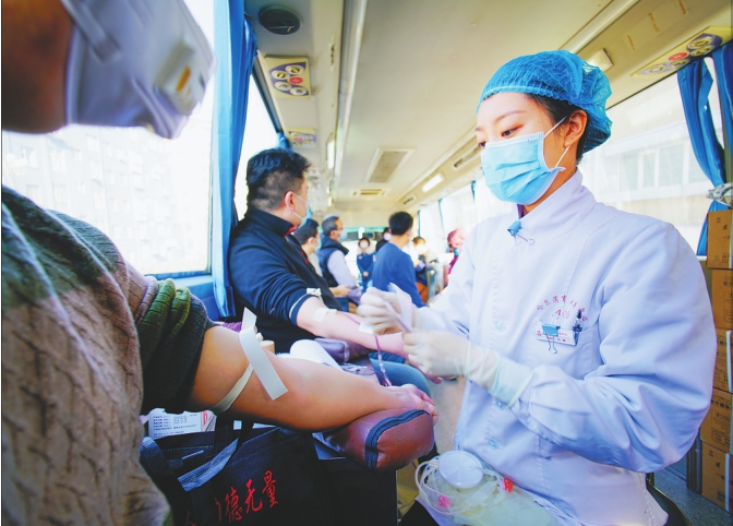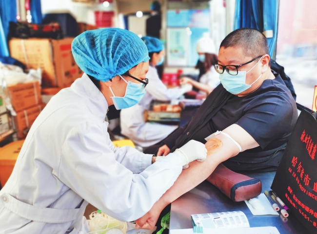 □本报记者李宝森 疫情防控期间,无偿献血者们并没有因为病毒而停下奉献爱心的脚步。在哈各中省直单位纷纷与黑龙江省血液中心联系,组织单位开展无偿献血。从2月11日~18日,22个在哈中省直单位党员干部带头,548人献血,保障了疫情期间急诊急救临床用血。 近期,面对突如其来的新冠肺炎疫情,造成我省临床医疗机构用血极度短缺,为缓解在哈各级医疗机构用血需求压力,保障疫情期间的急诊、急救临床用血,2月9日,省总工会会同省卫健委、省直机关工委联合下发了《关于紧急启动新冠肺炎疫情防控期间团体无偿献血工作的通知》,第一时间启动了在哈各中省直机关、各级工会组织团体无偿献血工作。 17日,记者在民航路7号黑龙江省建筑安装集团门前看到,献血者们都戴着口罩,每次两个人上采血车献血。在采血车上记者看到,一名护士在为两个人采血,车上气氛温馨。正在献血的黄旭东告诉记者,这是他第三次献血,能在疫情期间奉献一份爱心非常高兴。“病毒挡不住无偿献血者奉献爱心的脚步。尽管公司尚未安排上班,但家在哈尔滨的党员干部和职工都纷纷报名,来参加献血的三分之二以上是党员干部。”省建筑安装集团公司工会副主席杨力告诉记者,集团从董事长、总经理到各分公司经理,带头报名献血,严格筛选出137名献血者,大家要为战胜疫情贡献自己的力量。 黑龙江日报报业集团党员干部带头,259名职工报名参与无偿献血。18日8时30分,黑龙江省血液中心7辆采血车到达指定地点,参与献血的人员分成7个小组,每组设组长,负责召集、组织组内人员实名登记、按顺序献血。为避免献血者聚集,筑牢防控疫情的防线,保障献血人员和医务人员的健康安全,集团采取分时、分段、分流,一次不超过两人的方式进行献血,整个献血过程秩序井然。干部在这次献血队伍中处处能看到党员的身影。大家纷纷表示,能在这个特殊时期参与献血,为打赢新冠肺炎疫情防控阻击战贡献一份力量,是党员、媒体人义不容辞的责任。