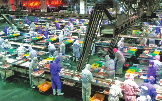 北大荒集团宝泉岭分公司(管理局)一手抓疫情防控,一手抓生产运营,科学推动企业复工复产。北三峡食品有限公司目前有700多名工人投入到生产一线,日屠宰白羽鸡15万余只,产鸡肉产品360余吨,积极保障人民群众生活必需品。白羽鸡加工车间工人在加工鸡肉产品。 杨建国本报记者吴树江刘楠摄