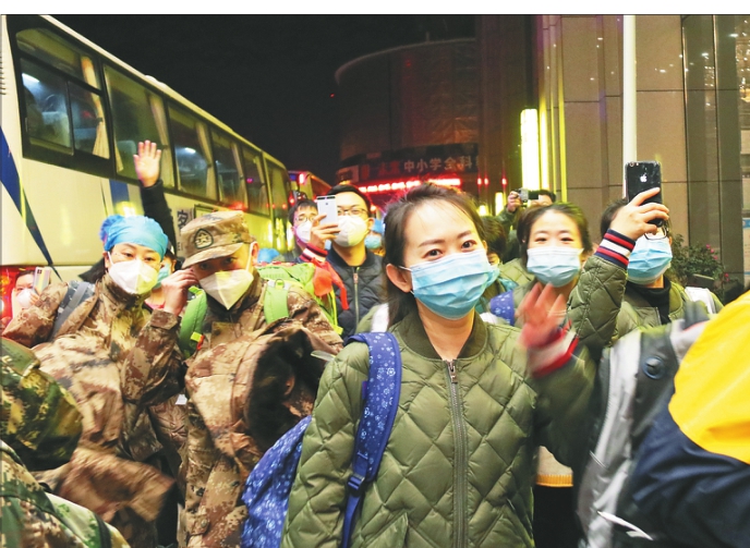 黑龙江援助孝感医疗队第四批成员抵达孝感驻地,黑龙江医疗队队员正在下车。丁亦轺摄
