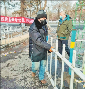□文/摄本报记者韩丽平 脸冻红了手冻裂了布满血丝,大家都劝他歇一歇,他却说,越是艰苦越要不怕苦,手裂口没啥,坚决不能让小区的封闭管理“裂口子”。他就是王建成,哈尔滨新区平房片区通宾社区的一名网格员。 疫情发生初期,他被平房片区兴建街道临时抽调做内业工作。没到两天王建成就“坐不住”了,主动申请到一线去工作。 为把小区封闭工作做实做细,王建成当起了小区“包工头”。疫情期间雇不到工人,他就自己带领小区保洁人员找材料、拉铁丝网、绑栅栏、拧螺丝,将一个个围挡竖起来。别人下班了,王建成还要继续去巡视,一个卡点一个卡点走,把封闭围挡加高加固,发现有破损的地方就记录下来,第一时间尽快修好。 人员少工作强度大,连续两天的高强度工作让王建成累得直不起腰来。实在扛不动了,他就把材料捆起来,用胳膊拖着走。“早一分钟完成小区封闭,居民就多一份安全。”王建成说。他每天回家时都已是后半夜。看着王建成在寒风中冻得通红的脸和手上的冻疮,很多居民开始帮他一起安围栏。 2月17日,王建成利用吃午饭的时间写下了入党申请书。