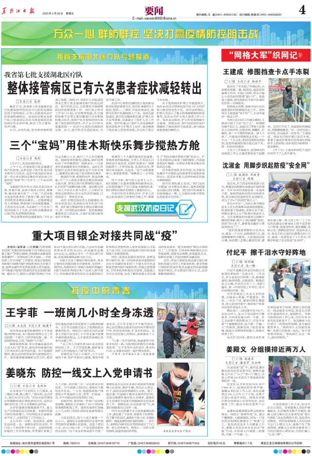本报讯(温育涵记者李播)为贯彻落实国家“在做好防控前提下有序推动企业复工复产”的指示精神,贯彻落实省委省政府部署的“一手抓防疫工作不放松,一手抓经济工作不动摇”工作要求,黑龙江银保监局积极引导辖内银行保险机构加大对接力度,发挥金融作用支持我省重大项目建设,尽可能减少疫情对我省经济社会发展的影响。截至21日,辖内16家银行机构已与全省42个重大项目进行对接,占2020年有融资需求项目的59.15%,涉及融资金额219.66亿元;保险公司与一个项目进行对接,涉及风险保障金额1924万元。 为便于企业了解银行授信条件,黑龙江银保监局提高银企对接效率,仅利用一周时间,高效组织31家银行保险机构编订《银行保险机构授信和产品准入条件指引》,向有融资需求的项目企业提供银行机构相关贷款的准入条件和保险公司相关产品介绍,为企业获取银行授信和选择保险产品提供指南。 同时,该局还加强信息传导,发挥监管引领作用,第一时间将省发改委提供的2020年有融资需求的71个重大项目名录转发至辖内银行保险机构,并提出监管要求,引导各机构积极应对疫情,采取线上方式主动对接,全面了解我省重大项目建设的资金需求。配合省政府“铆定开春即开工”工作要求,引导各机构积极向总行争取政策,预留充足规模,拓宽服务方式,保障企业复工后及时提供金融支持。 此外,黑龙江银保监局还建立银行保险机构重大项目工作联系机制,要求各银行保险机构及时报送金融支持和新增融资意向情况,并定期进行统计汇总,动态掌握进展情况。