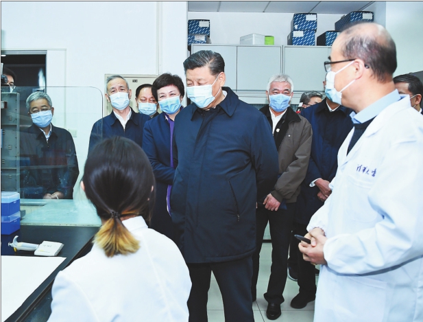 新华社北京3月2日电中共中央总书记、国家主席、中央军委主席习近平2日在北京考察新冠肺炎防控科研攻关工作,代表党中央向奋斗在疫情防控科研攻关一线的广大科技工作者表示衷心的感谢和诚挚的问候。他强调,人类同疾病较量最有力的武器就是科学技术,人类战胜大灾大疫离不开科学发展和技术创新。要把新冠肺炎防控科研攻关作为一项重大而紧迫任务,综合多学科力量,统一领导、协同推进,在坚持科学性、确保安全性的基础上加快研发进度,尽快攻克疫情防控的重点难点问题,为打赢疫情防控人民战争、总体战、阻击战提供强大科技支撑。 2日下午,习近平首先来到军事医学研究院,听取研究院关于新冠肺炎疫情防控科研攻关的总体情况汇报,结合展板和实物了解疫苗和抗体研制、药物筛选、病毒致病机理研究、快速检测试剂研究和应用等进展情况。在仪器测试楼,习近平察看了重大疫情应急防控药物研究室,向坚守岗位、奋力攻关的一线专家和科研人员表示亲切慰问。他强调,提高治愈率、降低病亡率,最终战胜疫情,关键要靠科技。习近平指出,新冠肺炎疫情发生以来,军事医学研究院坚决贯彻党中央和中央军委决策指示,闻令即动、争分夺秒,集中力量展开应急科研攻关,取得了阶段性成果,充分展现了人民军队忠于党、忠于人民的政治本色和敢打硬仗、善打胜仗的优良作风。习近平希望他们再接再厉,充分发挥突击队和主力军作用,尽快研制出安全有效的疫苗、药物、检测试剂,全力满足抗击疫情需要。要坚持在疫情可溯、可诊、可防、可治、可控方面合力攻关,通过打这场硬仗,掌握更多具有自主知识产权的核心科技,拿出更多硬核产品,为维护人民生命安全和身体健康、维护国家战略安全作出更大贡献。 离开军事医学研究院,习近平来到清华大学医学院考察调研。他先后走进全球健康与传染病研究中心、生物医学检测技术及仪器北京实验室,向专家详细了解创新药物研发进展情况和新型检测试剂、检测设备研发应用等情况,并观看了正在进行的酶联免疫吸附试验。习近平指出,防控新冠肺炎疫情斗争有两条战线,一条是疫情防控第一线,另一条就是科研和物资生产,两条战线要相互配合、并肩作战。 (下转第六版) (上接第一版)习近平希望他们加强同前方的配合,组织精干力量、急事急办,加速推进新型检测试剂、抗体药物、疫苗和诊疗方案等攻关。习近平强调,我国是一个有着14亿多人口的大国,防范化解重大疫情和重大突发公共卫生风险,始终是我们须臾不可放松的大事。要健全国家重大疫情监控网络,完善法律法规体系,加大前沿技术攻关和尖端人才培养力度,尽快提高我国应对重大突发公共卫生事件能力和水平。 随后,习近平在清华大学医学院主持召开座谈会,听取科技部关于全国药品和疫苗研发工作,国家卫生健康委关于有效临床应用经验和有效诊疗方案总结推广工作的情况汇报。 听取汇报后,习近平发表了重要讲话。他指出,疫情发生以来,全国科技战线积极响应党中央号召,有关部门组成科研攻关组,确定临床救治和药物、疫苗研发、检测技术和产品、病毒病原学和流行病学、动物模型构建等五大主攻方向,组织跨学科、跨领域的科研团队,科研、临床、防控一线相互协同,产学研各方紧密配合,短短一个多月时间内就取得了积极进展,为疫情防控提供了有力科技支撑。在这场重大斗争中,广大科技工作者充分展示了拼搏奉献的优良作风、严谨求实的专业精神。当前,打赢疫情防控人民战争、总体战、阻击战还需要付出艰苦努力。越是面对这种情况,越要坚持向科学要答案、要方法。 习近平强调,尽最大努力挽救更多患者生命是当务之急、重中之重,要加强药物、医疗装备研发和临床救治相结合,切实提高治愈率、降低病亡率。要强化科研攻关支撑和服务前方一线救治的部署,坚持临床研究和临床救治协同,让科研成果更多向临床一线倾斜。要加快药物研发进程,坚持中西医结合、中西药并用,加快推广应用已经研发和筛选的有效药物,同时根据一线救治需要再筛选一批有效治疗药物,探索新的治疗手段,尽最大可能阻止轻症患者向重症转化。要采取恢复期血浆、干细胞、单克隆抗体等先进治疗方式,提升重症、危重症救治水平。 习近平指出,疫苗作为用于健康人的特殊产品,对疫情防控至关重要,对安全性的要求也是第一位的。要加快推进已有的多种技术路线疫苗研发,同时密切跟踪国外研发进展,加强合作,争取早日推动疫苗的临床试验和上市使用。要推进疫苗研发和产业化链条有机衔接,加快建立以企业为主体、产学研相结合的疫苗研发和产业化体系,建立国家疫苗储备制度,为有可能出现的常态化防控工作做好周全准备。 习近平强调,要统筹病毒溯源及其传播途径研究,利用病毒蛋白和不同受体的结合特征,评估可疑动物作为中间宿主的可能性,利用人工智能、大数据等新技术开展流行病学和溯源调查,搞清楚病源从哪里来、向哪里去,提高精准度和筛查效率。 习近平指出,病人心理康复需要一个过程,很多隔离在家的群众时间长了会产生这样那样的心理问题,病亡者家属也需要心理疏导。要高度重视他们的心理健康,动员各方面力量全面加强心理疏导工作。 习近平强调,重大传染病和生物安全风险是事关国家安全和发展、事关社会