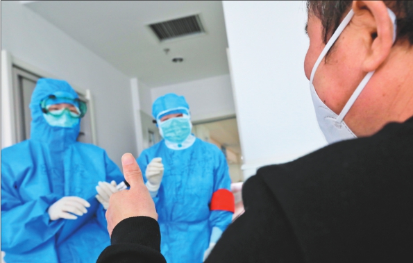 治愈患者向医护人员表示感谢。本报记者张澍摄