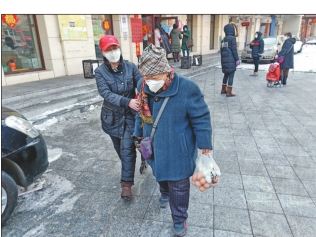 □本报记者李健 “这两天叶菜价格降了,可以多买点儿!”“店里有特价商品,我给您推荐一下吧!”……像这样主动为排队购物的居民提供服务早已成为孙铁英的日常。 孙铁英是哈尔滨市司法局下沉的机关干部,负责位于融江路和滇池东路交口的地利生鲜群力家园店卡点的值守。 在孙铁英值守的超市对面,有一家大型超市,很多居民为了买到更实惠的物品,总是对比价格。为了方便居民快速精准购买物品,减少排队进场时间,孙铁英每天上岗前先到店里巡视一圈,把价格背个八九不离十。“很多居民见我对商品价格如此熟悉,都把我当成了店长。” “店长,今天鸡蛋啥价格呀?”“店长,市里下拨的特价土豆还有吗?”在记者采访过程中,就有好几位购物的居民向他们熟悉的店长咨询商品信息。“自己的工作能得到居民认可,苦点累点不算啥。”孙铁英对自己店长的称谓,非常满意。 一天,一位腿部刚做完手术的独居男子来到店里,想买一袋50斤的面粉。当时没货,就先付款,说过两天货到再来取。结果货到后,店员忘了这件事,导致该男子又白跑一趟。当时,该男子特别生气。孙铁英了解情况后,一再给对方道歉,并答应对方,面粉到了亲自送到家里。当该男子看到想要买的面粉被孙铁英送到小区门口时,惊讶之余更多的是感动。“特殊时期,忘事能理解,我当时太冲动了。”男子说。 维持排队秩序、提供价格咨询、帮忙运送物品……疫情防控期间,孙铁英“店长”职责会继续履行着。 孙铁英在搀扶年长顾客。 本报记者李健摄