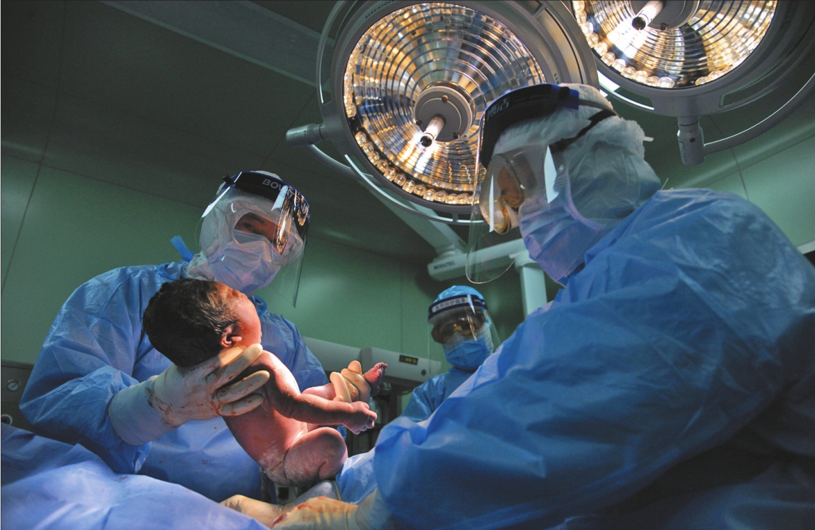 3月4日在武汉协和医院西院4楼隔离产房内,一名新冠肺炎孕产妇经过剖宫产生下一名女婴,“疫”线曙光下的新生。