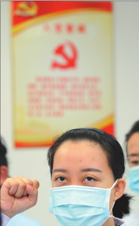 武汉协和医院西院内,黑龙江医疗队的队员换上隔离服准备进入隔离区。