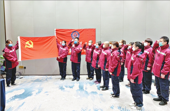 □本报记者孙佳薇杨任佳 “我志愿加入中国共产党……随时准备为党和人民牺牲一切……”3月9日13时,齐齐哈尔医学院附属第一、第二、第三医院新发展的10名预备党员宣誓仪式在武汉驻地举行。在鲜红的党旗下,张春莹、曲延章等10名预备党员举起右拳庄严宣誓,铿锵有力的声音响彻整个会场。 连日来,在武汉、在汉川、在应城、在安陆,一场场令人心潮澎湃的“火线”入党宣誓仪式在黑龙江支援湖北医疗队的各党支部驻地陆续举行。在一句句铮铮的誓言中,一批批优秀的医务人员成为党组织的新生力量,为打赢疫情防控阻 击战提供了坚强组织保证。 党旗飘飘 汇聚更强战“疫”力量 “在抗疫一线,无数党员临危不惧,与时间赛跑,与病魔抗争,让我们感受到了共产党员舍生取义的精神,每一次感动都是一次精神的洗礼,我决心向英雄学习,向党员模范学习,做一名冲锋在前的白衣战士!”驰援武汉的第四天,齐齐哈尔医学院附属第二医院血液风湿内一科医生曲延章就向党组织递交了入党申请书。 2月2日,面对严峻的抗疫形势,齐齐哈尔医学院选派119名医务人员驰援武汉。学院党委注重发挥党员先锋模范作用,引导医疗队员向党员看齐,在抗疫一线,70名队员向党组织递交了入党申请书。 疫情发生后,全省各地充分发挥党组织的感召力、带动力,在抗疫一线成立党员突击队、设立党员先锋岗,强化党组织政治引领作用,组织广大党员在疫情防控第一线打头阵、当先锋、作表率。党员冲锋在前、顽强拼搏的先锋模范作用,坚定了身边人的战斗信心,更感召了一大批先进分子向党组织靠拢。他们以党旗为指引、以党员为榜样,在紧要关头挺身而出,积极响应党组织号召,接受党组织的考验,在上一线前或在抗疫一线,递交了入党申请书,主动请缨到党和人民最需要的地方去战斗。赴湖北孝感驰援前,集贤县人民医院急诊科护士长夏艳春在向党组织递交的入党申请书中写道:“现在抗击疫情形势严峻,这既是我的入党申请书,也是我的请战书。我一定会严格按照党员标准要求自己……全力以赴、抗击病毒、逆向而行,为保障人民的生命安全和身体健康而奋斗。” 截至目前,全省共有14923名奋战在疫情防控一线的干部职工向党组织递交了入党申请书,其中755名支援湖北医务人员在抗疫一线向党组织递交了入党申请书。 “疫”线考场 向党交出合格答卷 “这次能在战地火线入党,圆了我的梦,我一定会继续努力,用实际行动接受党组织的考验。”哈医大二院危重症患者救治组90后护士尹航说,作为首批支援武汉医疗队的队员,他已在抗疫最前线奋战了40余天。 自1月28日以来,哈尔滨医科大学党委连续派出两批医疗队共456名医务人员驰援湖北。武汉前线临时党支部积极发挥战“疫”堡垒作用,在疫情防控最吃劲的关键阶段,以实际行动彰显“一个支部就是一座坚强的战斗堡垒,一名党员就是一面鲜红的旗帜”。哈尔滨医科大学支援湖北抗疫医疗队40名队员在武汉抗击疫情的战斗中,坚持冲在一线,积极主动承担急难险重任务,表现突出,以身作则,被党组织接收为预备党员。 据了解,我省各支援湖北医疗队临时党组织坚持把疫情抗击一线作为发现和考验入党积极分子的“试金石”,给他们交任务、压担子,在激励历练中检验入党初心、接受组织考验。把“在疫情抗击一线表现突出”作为“硬杠”,在抗疫一线,听群众呼声、看抗疫表现,把入党积极分子的政治素质、道德品行、现实表现等情况掌握准、摸清楚,确保新发展党员经得起检验。 为确保抗疫一线发展党员质量,各派出单位党组织积极配合,出发前即做好宣传动员,在支援湖北医疗队临时党组织提出发展对象人选后进行严格审核把关。鹤岗市坚持做到关口前置,在支援湖北医疗队临行前,指导所在基层党组织对入党积极分子进行重点谈话,对“火线”递交入党申请书人员进行重点了解,为临时党组织考实考准提供准确信息。富锦市、虎林市主动协调发展对象主要社会关系户籍所在地党组织,为政审开辟“绿色通道”,第一时间反馈审查情况,保证了战“疫”期间政审不受阻、不受限。双鸭山市严格落实疫情防控期间发展党员的有关工作要求,把握关键动作,确保程序完备、手续齐全。 战火淬炼 以仁心医术践初心使命 “火线”入党,是激励更是责任,虽然光荣,也意味着冲锋在前、吃苦在先。 近日,一名黑龙江省医生为救治孝感一个重症患者,保持弯腰姿态操作1个多小时,终于成功“盲穿”置管给患者进行血液净化治疗的故事在互联网上刷屏。这名医生就是前不久刚刚“火线”入党的黑龙江省医院神经呼吸重症监护室主任、副主任医师武猛。出征湖北孝感前,他作为危重症治疗组组长已经在绥化的抗疫战场上与死神较量了近半个月。绥化重患的病情逐渐稳定后,2月15日,武猛在回哈尔滨的路上接到跟随黑龙江省支援湖北医疗队赴孝感的命令,他二话没说,背上行李再次出征,转战孝感疫情最严重的汉川市。在汉川市人民医院,武猛同样负责危重症病区的救治任务,身着三级防护措施的他,每天要在隔离区工作10个多小时。 越是重大关头、关键时刻,越能考察和识别一个人。武猛是我省奋战在抗击新冠肺炎疫情一线的广大医务人员中的一分子,是诸多冲锋在前的“火线”入党抗疫战士的缩影。在这场没有硝烟的战争中,他们不计得失,第一