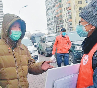 □文/摄本报记者王志强 张括和李辉,两名年轻的社区工作“新兵”,因在革新街道中山花园社区卡点值守而结缘,也因志愿服务而圆梦。 张括的志愿服务,从加入这场抗击新冠肺炎疫情的社区保卫战开始。张括是省文旅厅的一名90后预备党员,正值疫情吃劲之时,省直机关工委在全省党员干部中开展省直机关下沉社区志愿服务行动。号召发出,他立即报了名。张括说,疫情前线的报道让自己动容,回想2003年的非典,90后的他们是受庇护的一代,17年间的成长,身边人、身边事让自己知道职责、奉献和感恩。“17年前你们守护我们,如今我来守护你们。”张括说。 张括下沉到革新街道中山花园社区,他感到神圣、新鲜、激动,同时也觉得责任重大。在车辆拥堵时,他又立刻化身“交警”,拦截、引导、指挥车辆,动作像模像样;在冰天雪地的室外执勤两个小时,张括累得腰酸背痛、冻得手脚发麻,依旧坚守不退缩。 值岗时,有的老年人记不住身份证号码,他就主动帮忙联系家人询问;有扫码进出的居民操作不便时,他就帮忙操作;遇到无出入证还想方设法出门的人,他总是要晓之以理、动之以情劝导;一些外地返哈人员对隔离14天的生活保障有担忧时,他就耐心讲解社区的配套服务,消除居民忧虑。 同张括一样,李辉是有着志愿服务梦想的80后,他同时还是一名退伍军人、一名党员。和张括的外向、活力相比,李辉略显内敛和沉稳。 大年初五,李辉响应单位号召,放弃与家人团聚时间,自愿报名做了一名志愿者,到革新街道中山花园社区站岗执勤。在区城管局工作的他做志愿者,已不是第一次。在卡点执勤,他积极认真负责地工作,配合社区工作人员,对返哈人员进行报备和登记,填写信息和个人承诺书,对返哈人员进行居家隔离管控。如果居家隔离期间的居民有购物需求,李辉就配合社区工作人员,把东西送到隔离人员家门口,无论楼层有多高、有无电梯,他都任劳任怨,从不言累。 李辉还主动担当,选择24小时两班倒的执勤工作。在他管辖的卡点,有个居民隔几天就得去医院做透析,为了老人出行方便,他跟社区协商,提前按着程序登记好车辆信息,当需要进出卡口去医院时,接送车辆总能顺利快速通过。