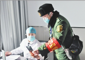□文/摄岳文于长顺本报记者吴树江刘楠 连日来,在襄河农场有限公司疫情防控中,有一位头戴军帽、身穿军大衣、戴着红袖标、背着小书包的人,他或在住宅小区卡口或穿梭于各家各户,或来往于医院邮局等公共场所,他行走如风,紧张而忙碌。 “海洋,帮我取一下快递”“海洋,我母亲心脏病犯了,需要马上服用丹参滴丸”“海洋,下水管堵了,你能来看看吗?”每天除了入户排查有无外来人员、测量体温外,于海洋承担着居民的“快递员”“购物员”“服务员”的角色。 于海洋今年29岁,2015年复员回到农场,被农场聘为城管员。农场实行疫情防控网格化管理后,考虑到祥和小区1号楼老年人居多、生活琐事可能多的特殊性,特意安排军人出身的于海洋负责。为做好工作,他把从部队带回的军用小挎包找了出来,背在身上,平时装些体温计,各种排查表和笔,在给居民买个药取个快递都派上用场。他还准备了一些生活中常用的小工具,以备不时之需。看得出军人出身的他,除了保持军人的作风外,还是个心思细腻考虑周全的人。 于海洋一天的工作是忙碌的,从早晨起来,一天基本没有闲的时候。入户调查、测量体温、填写各种表格、处理居民生活琐事,经常忙到午夜。有时已经很晚了,居民一个电话他就立即起来。于海洋担任网格员30多天来,起早贪晚,把分内负责的监督防控工作做得井井有条,得到领导和广大居民的高度好评。居民孙阿姨说:“这小伙真的不错,听说还没有对象,我已经发动亲戚朋友了,一定给找个好姑娘。” 于海洋帮居民买药。