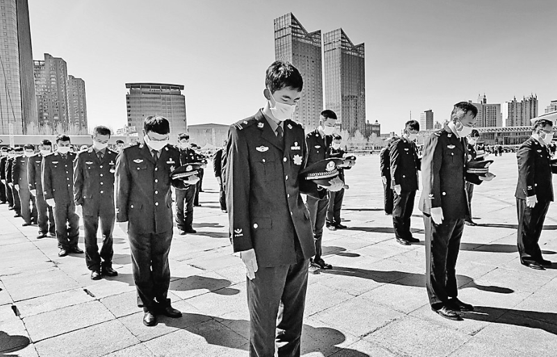 4日上午10时,我省“深切哀悼新冠肺炎疫情牺牲烈士和逝世同胞”默哀仪式在哈尔滨国际会议展览中心广场举行。 徐旭本报记者邵国良摄